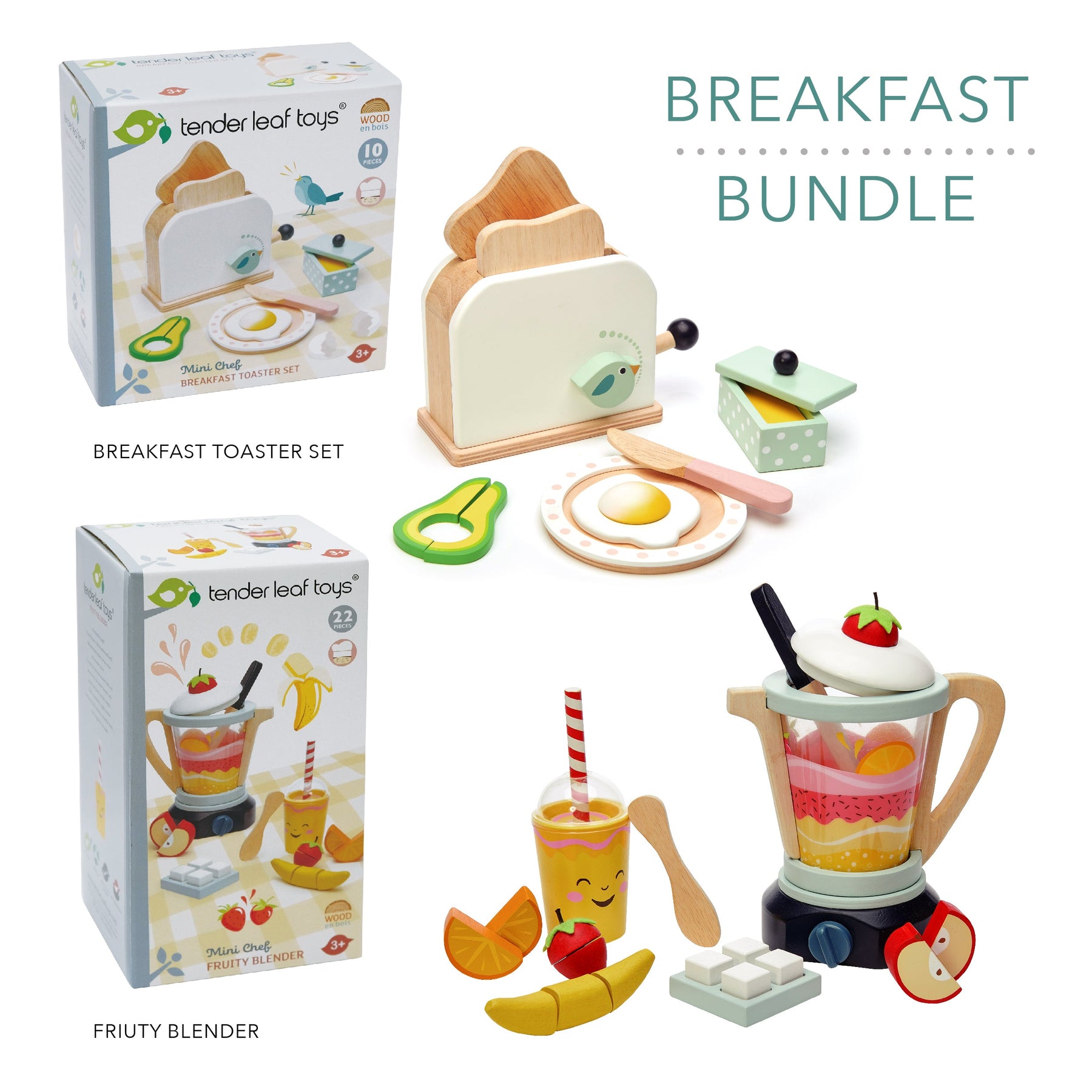 Set includes our Breakfast Toaster Set & Fruity Blender